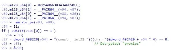 图 33:AuraStealer 的配置解析函数中解密的字符串“代理”。