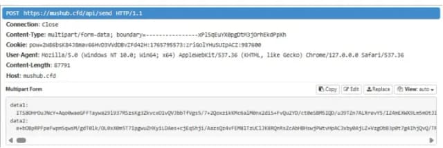 AuraStealer 的网络流量可分为四个阶段。窃取者首先通过检查网络的可达性来验证互联网连接 1.1.1.1:53 (云耀)。成功后,它会尝试通过查询来与其 C2 基础设施建立通信 /api/live 端点并期待响应 true。如果任何服务器可以访问,它就会请求 /api/conf,连同其 build_id,检索定义要收集的数据的特定于构建的配置(a 配置示例 在我们的 GitHub 存储库上公开可用)。最后,收集的文件被分成较小的档案,并在通过收集时分批发送 /api/send 端点。