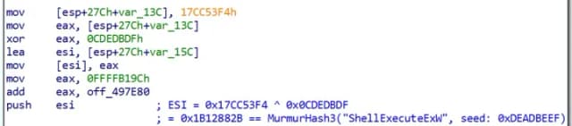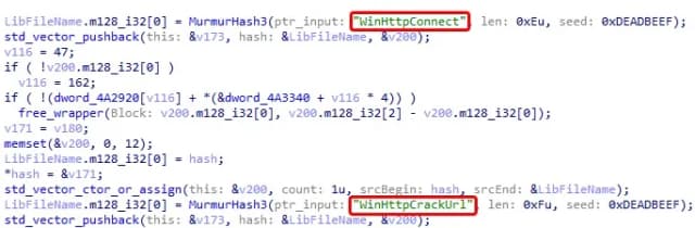 图 16:函数名称的 MurmurHash3 值的不断混淆。
