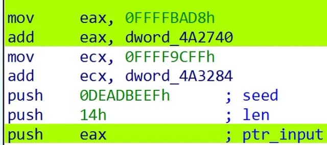 MurmurHash3算法对某个函数名进行哈希; - 种子(seed)固定为